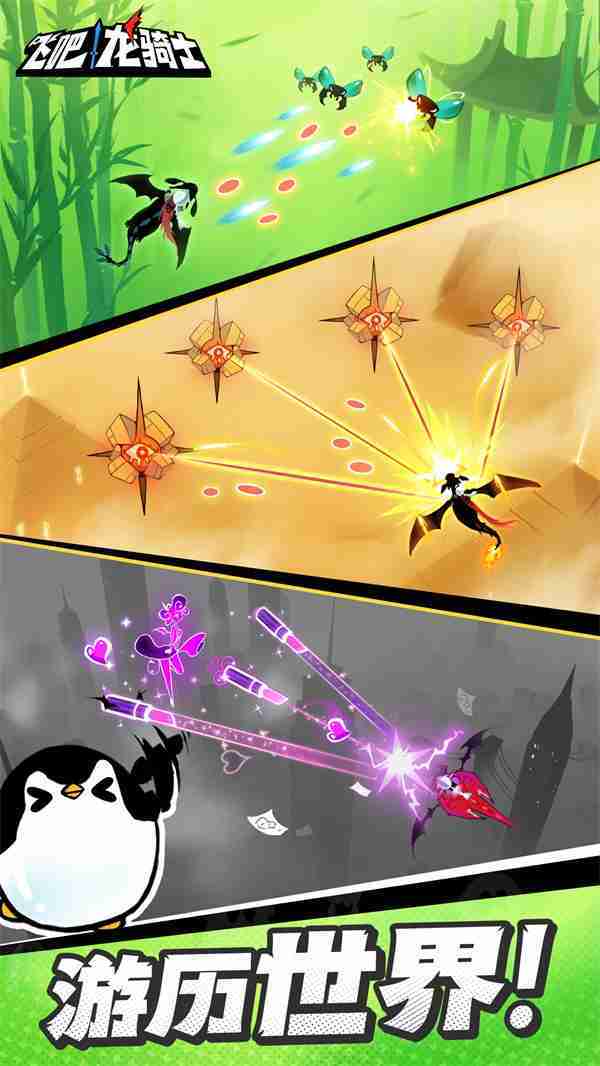 《飞吧龙骑士》是一款集合了飞行弹幕射击、、Roguelike要素和挂机养成的休闲手游,,极具创意的吞食子弹反击玩法,,,,突破传统飞行射击的刻板限制,,,,带来了独特的爽快清屏体验。。。